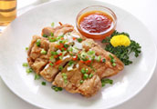 鶏モモ肉カリカリ揚げ香味ソースかけ